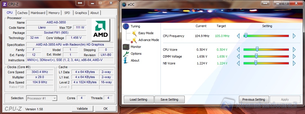 Iniziamo quindi con il portar la frequenza dell’A8-3850 a 3040MHz circa, aumentando il BUS di soli 5MHz.