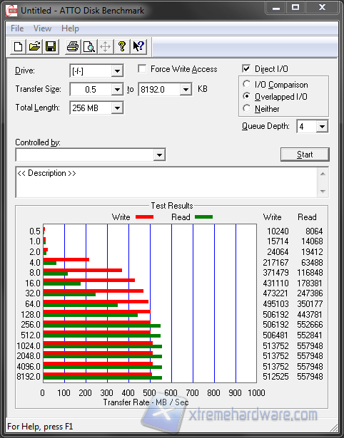 Atto è un benchmark gratuito che esegue dei semplici test in lettura e in scrittura in modalità sequenziale adoperando una Queue Depth (file in coda) di 4.